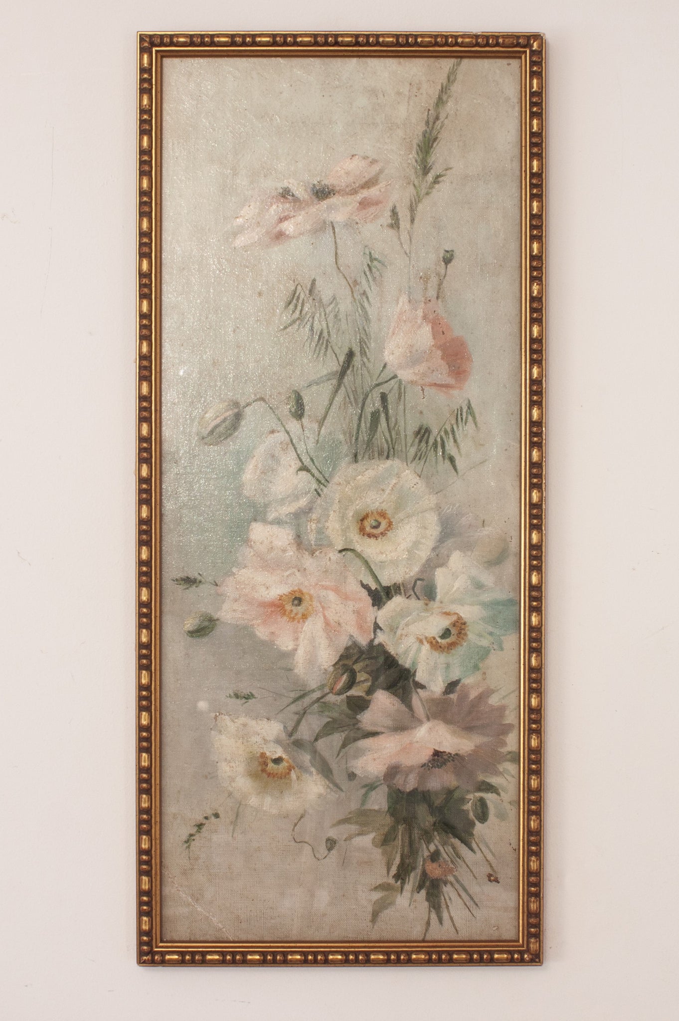 Elegant floral ensemble with white poppies. 19th Century Spanish work by an anonymous author.